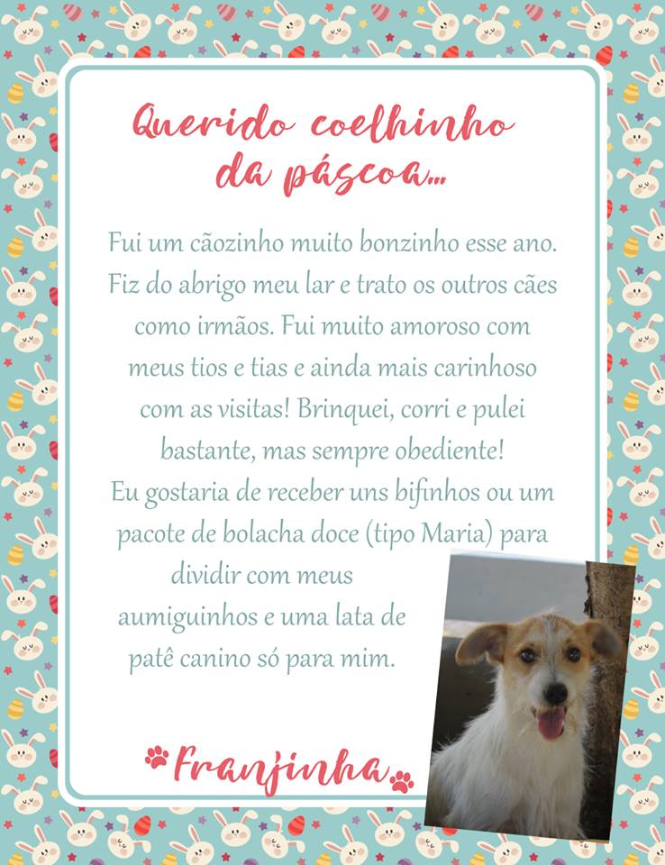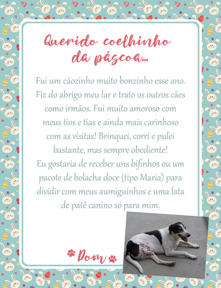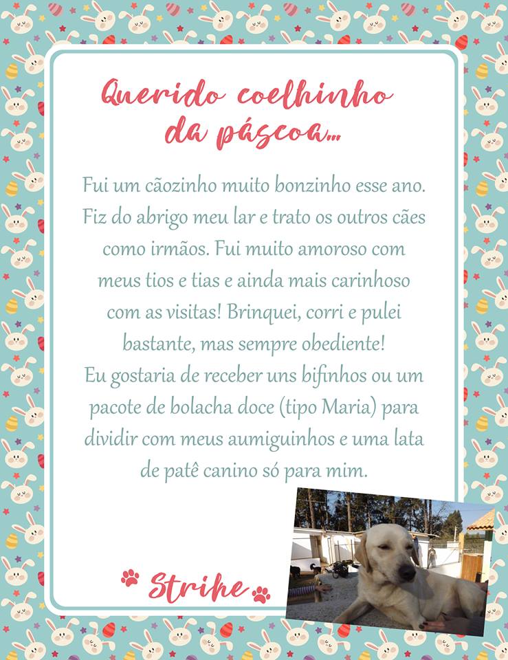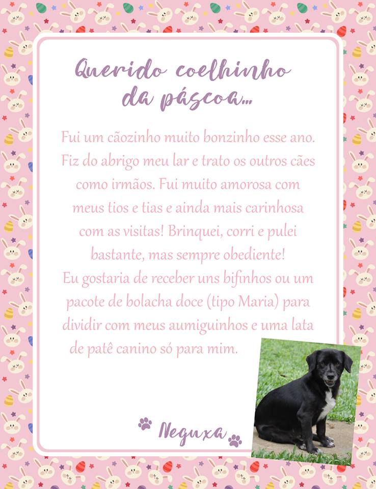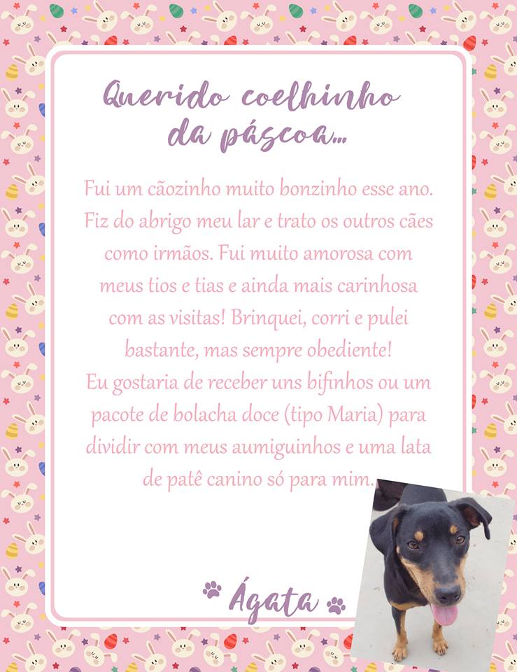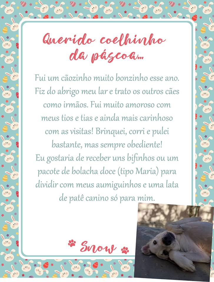 Nesta Páscoa o Abrigo de Cães São Francisco de Assis lançou um evento especial para a arrecadação de petiscos para os cães. Você pode doar bifinhos, um pacote de bolacha doce (tipo Maria) ou uma lata de patê canino e assim deixar os cães mais felizes nesta Páscoa. As doações podem ser deixadas na loja Crie Bem, em Rio Negro.