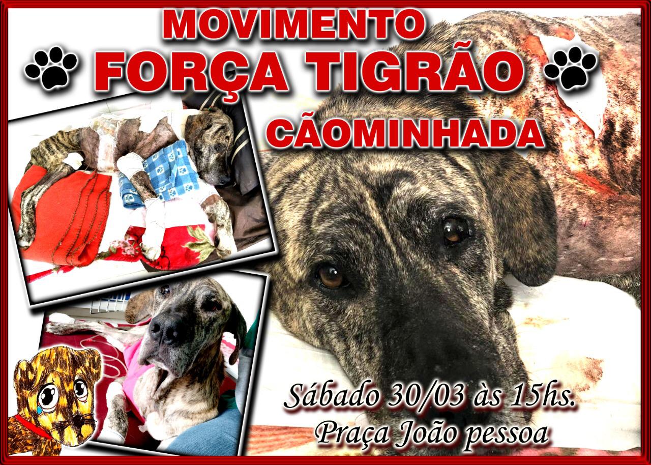 Neste sábado (30) será realizada uma “cãominhada” em prol do Tigrão e também para pedir justiça para este caso e para evitar que outras atrocidades como esta ocorram. O evento será às 15h na Praça João Pessoa. Você pode levar o seu animalzinho para participar da caminhada. Não há custos para participar e não será preciso fazer inscrição. A voz do povo faz toda a diferença. Sua presença será muito importante.