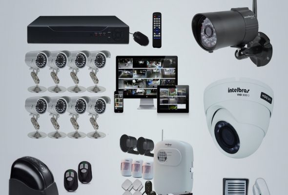 Câmeras de segurança, alarmes, portão eletrônico e interfone