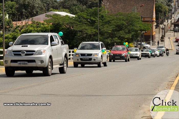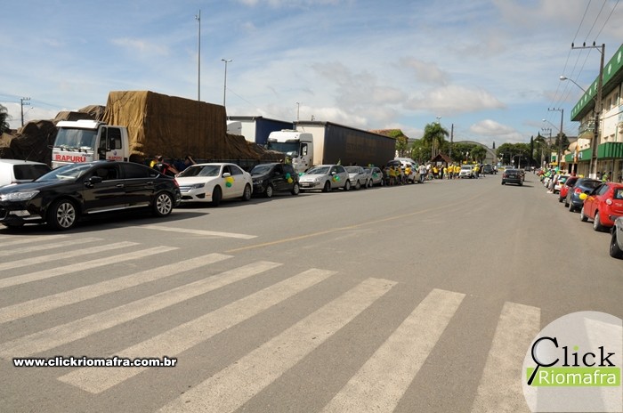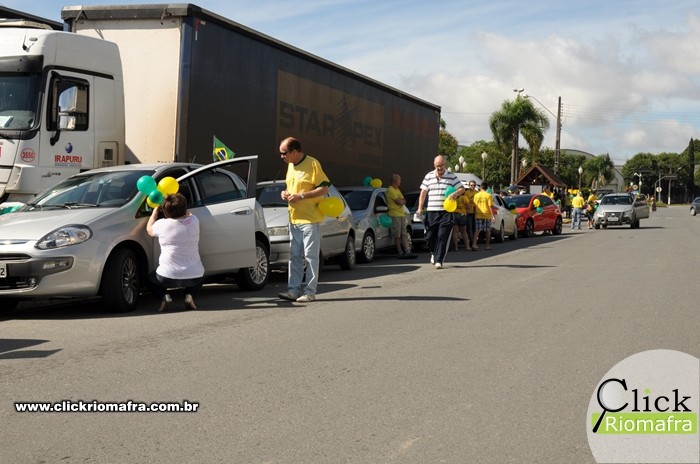 Na manhã deste domingo (13), manifestantes a favor do impeachment da presidente Dilma Rousseff realizaram uma carreata pelas ruas de Rio Negro e Mafra. A concentração e ponto de partida para o protesto ocorreu em frente à loja Afubra no bairro Bom Jesus. No local foram distribuídos adesivos, bandeiras e bexigas para a customização dos veículos.