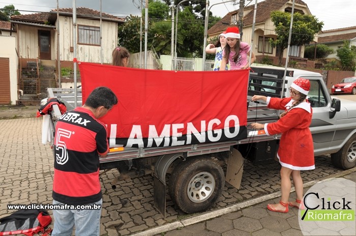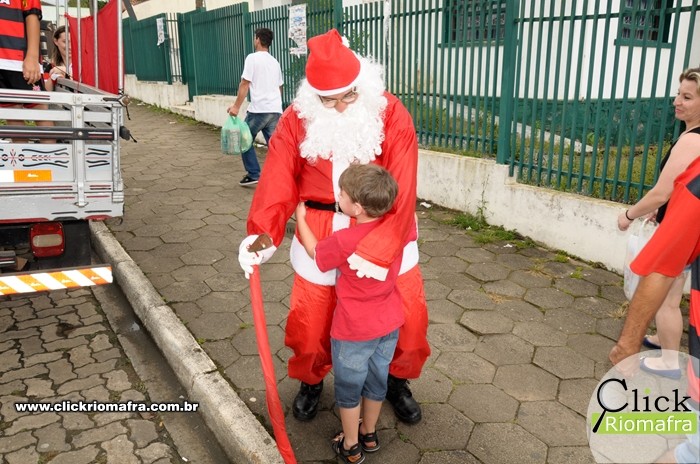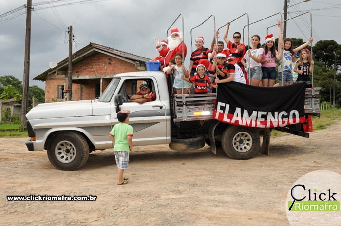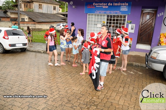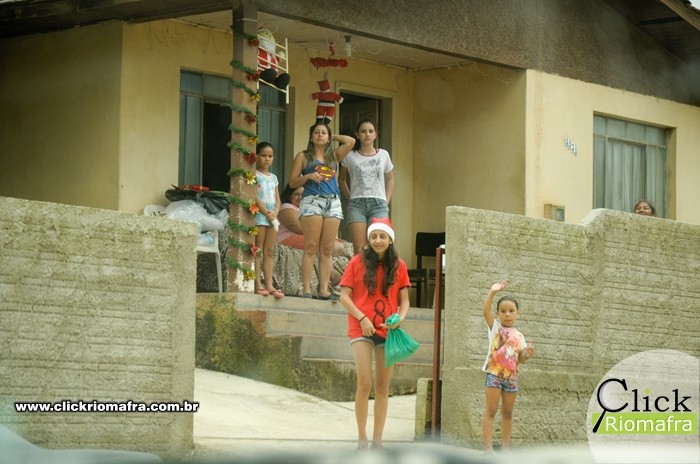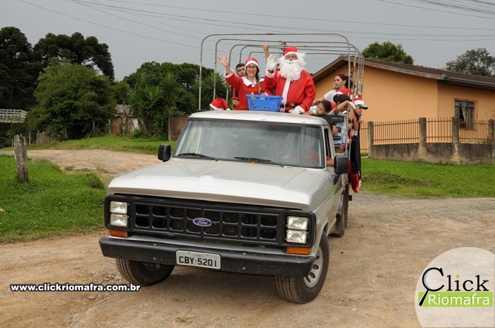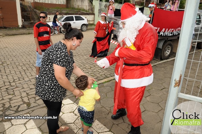 Na tarde desta quinta-feira (24), um grupo de voluntários de Mafra se reuniu com a equipe do projeto Natal Luz e animou a população de diversos bairros, como a Vila Solidariedade, Vila Ivete, Amola Flecha e Vila Grossel. O Papai Noel, juntamente com a Mamãe Noel e seus auxiliares, distribuiu doces e alegria a todos que o recebiam por onde passou.