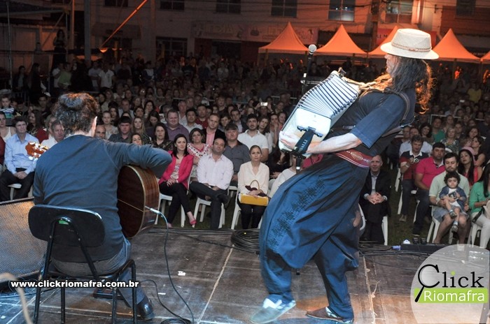 O renomado gaiteiro Renato Borghetti, acompanhado pela Camerata Porto Alegre, agitou o público na noite desta sexta-feira com música instrumental gaúcha. O evento – que faz parte da programação da 11ª Festa da Colonização de Rio Negro – ocorreu no centro de Rio Negro. O Click Riomafra realizou a cobertura fotográfica do evento. Confira os clicks.