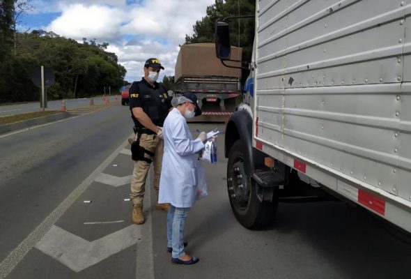 Ação conjunta PRF e Sest/Senat ajuda caminhoneiros a combater a pandemia em Mafra