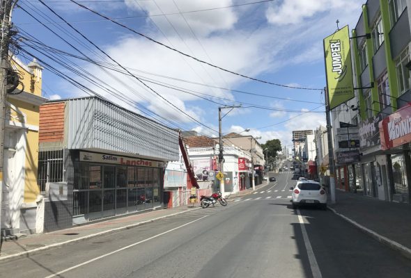 Ruas vazias: o ‘centro nervoso’ de Mafra às 13h40min desta quinta-feira