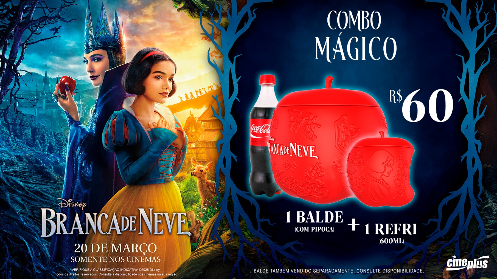 Branca de Neve estreia nesta quinta-feira no Cineplus. Venha se encantar com o filme e com este Combo Mágico. Confira a programação: https://cinemacineplus.com.br/ingressos-online/