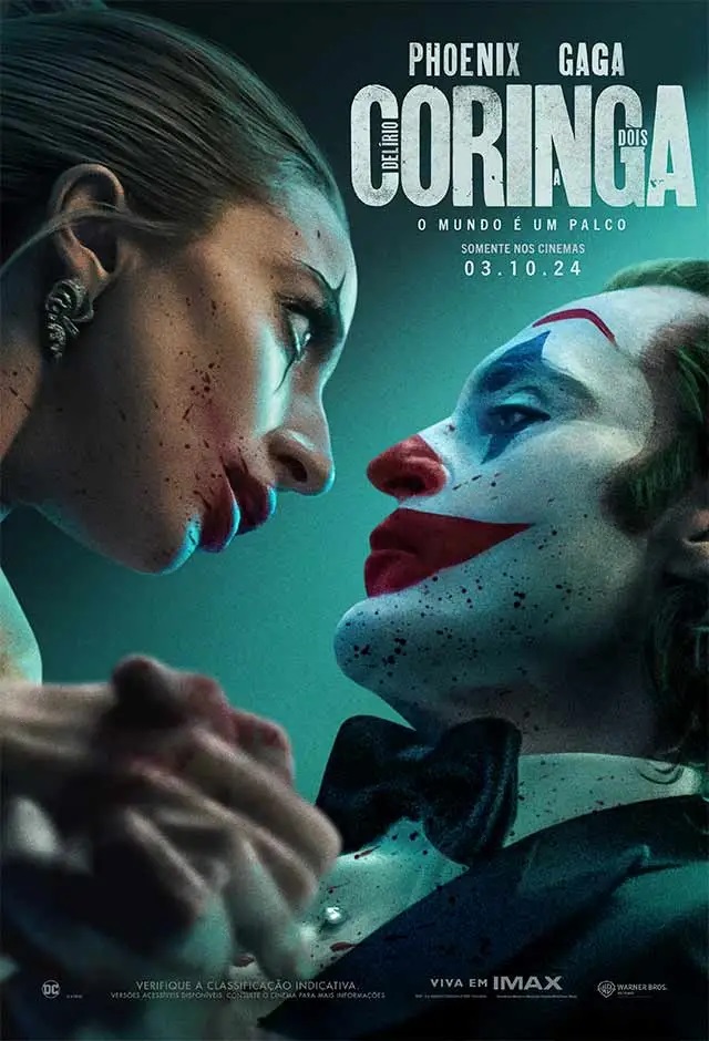 Em Coringa 2, acompanhamos a sequência do longa sobre Arthur Fleck (Joaquin Phoenix), que trabalhava como palhaço para uma agência de talentos e precisou lidar desde sempre com seus problemas mentais. Vindo de uma origem familiar complicada, sua personalidade nada convencional o fez ser demitido do emprego, e, numa reação a essa e tantas outras infelicidades em sua vida, ele assumiu uma postura violenta – e se tornou o Coringa. A continuação se passa depois dos acontecimentos do filme de 2019, após ser iniciado um movimento popular contra a elite de Gotham City, revolução esta, que teve o Coringa como seu maior representante. Preso no hospital psiquiátrico de Arkham, ele acaba conhecendo Harleen “Lee” Quinzel (Lady Gaga). A curiosidade mútua acaba se transformando em paixão e obsessão e eles desenvolvem um relacionamento romântico e doentio. Lee e Arthur embarcam em uma desventura alucinada, fervorosa e musical pelo submundo de Gotham City, enquanto o julgamento público d’O Coringa se desenrola, impactando toda a cidade e suas próprias mentes conturbadas.