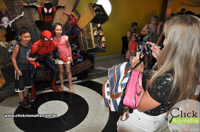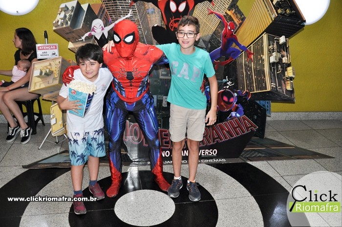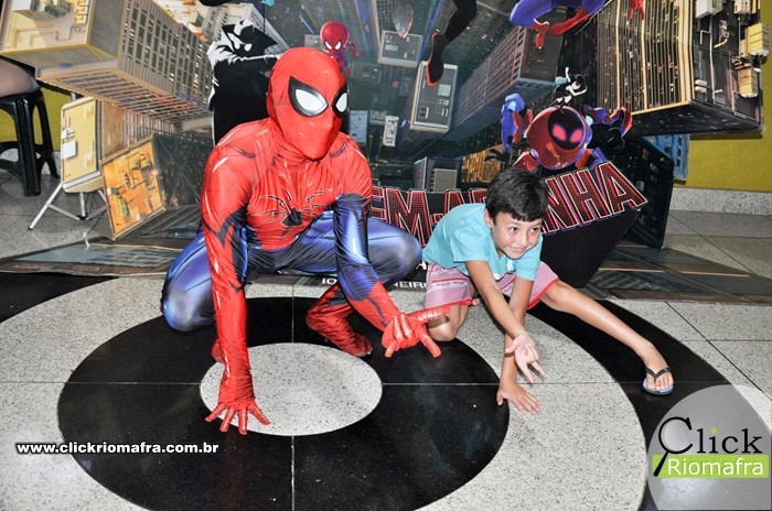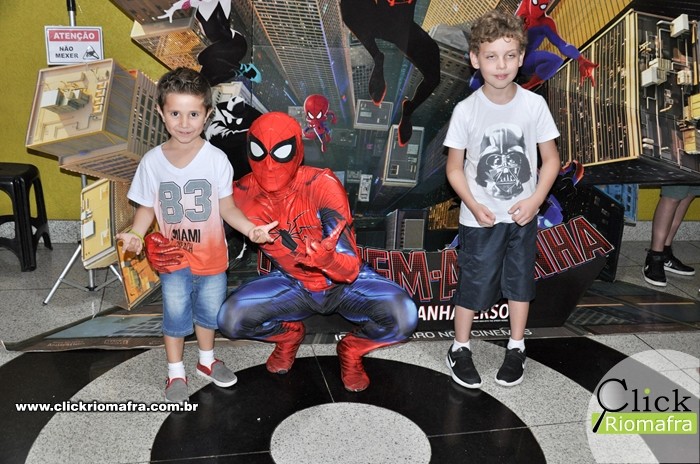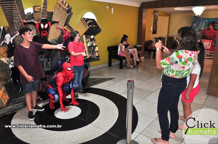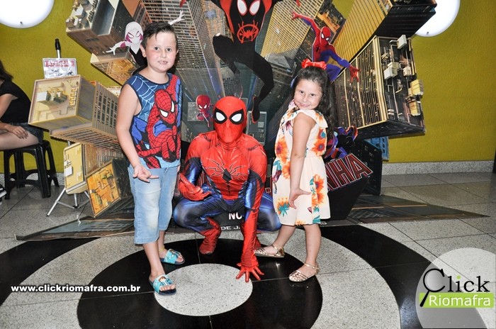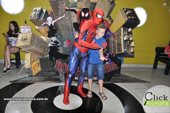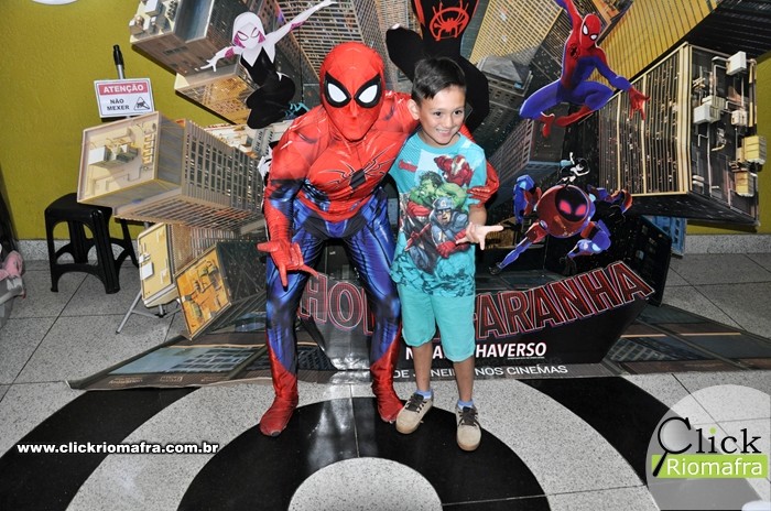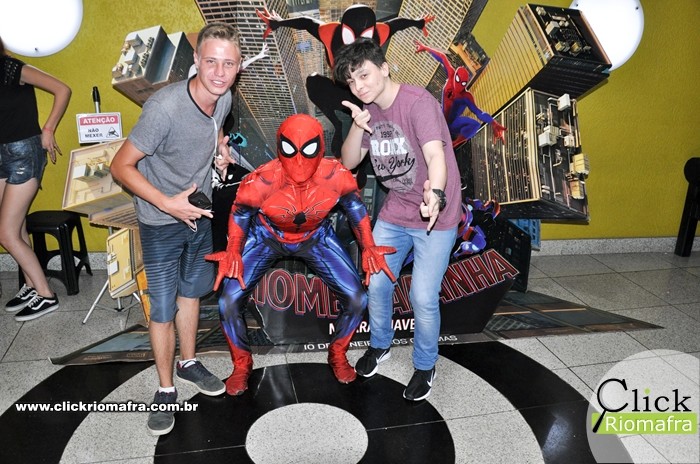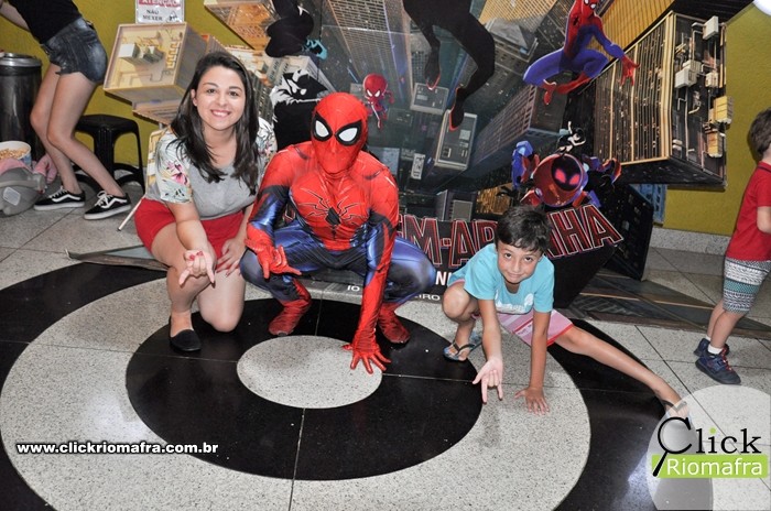 Neste sábado o Homem-Aranha estará no cinema a partir das 20h. É possÃvel comparecer ao cinema para tirar fotos à vontade e sem custo.