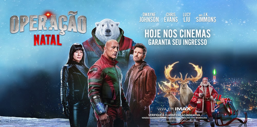 Operação Natal é um longa do diretor Jake Kasdan com os astros Dwayne Johnson, o famoso The Rock, Chris Evans, famoso por sua interpretação como Capitão América nos filmes da franquia Marvel, e Lucy Liu, que tem destaques como Kill Bill e As Panteras em sua filmografia. Depois de um sequestro chocante que abalou o Polo Norte, o Comandante da Força Tarefa (ELF), Callum Drift (Dwayne Johnson), deverá fazer uma parceria com o mais famoso caçador de recompensas do mundo, Jack O’Malley (Chris Evans), para salvar o Natal de diversas crianças e adultos ao redor do mundo. Isso porque a vÃtima do sequestro foi ninguém mais e ninguém menos que o Papai Noel e essa dupla dinâmica não o recuperar a tempo, o Natal estará perdido. Essa comédia de ação e aventura contagiante tem quatro quadrantes e é aberto um universo totalmente novo para explorar dentro desse gênero de férias natalinas.