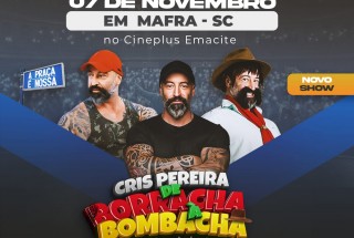 📍 Alô Mafra e Região. Cris Pereira vem aí com seu novo show de comédia. “DE BORRACHA À BOMBACHA”. Com os personagens: Jorge da Borracharia, do programa A PRAÇA É NOSSA do SBT, e com o Gaudêncio!!!! 🗓 Será dia 07 de Novembro, (segunda feira) às 20:00 no Cineplus Emacite Mafra. * INGRESSOS PROMOCIONAIS LIMITADOS […]