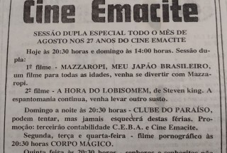 O cinema sempre foi marcante em Rio Negro-PR e Mafra-SC. Sucessos como Mazzaropi e filme de Steven King fizeram parte da programação do histórico Cine Emacite em 1988. E também filmes pornográficos em três dias da semana para “animar” o público. O mês de agosto de 1988 foi especial com programação ampla em comemoração aos […]