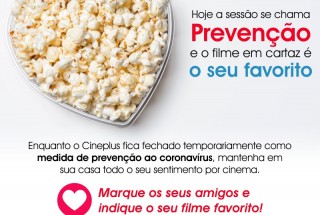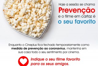 Enquanto o Cineplus fica fechado temporariamente como medida de prevenção ao coronavírus, mantenha em casa o seu sentimento por cinema. Indique para seus amigos o seu filme favorito. 🍿❤️