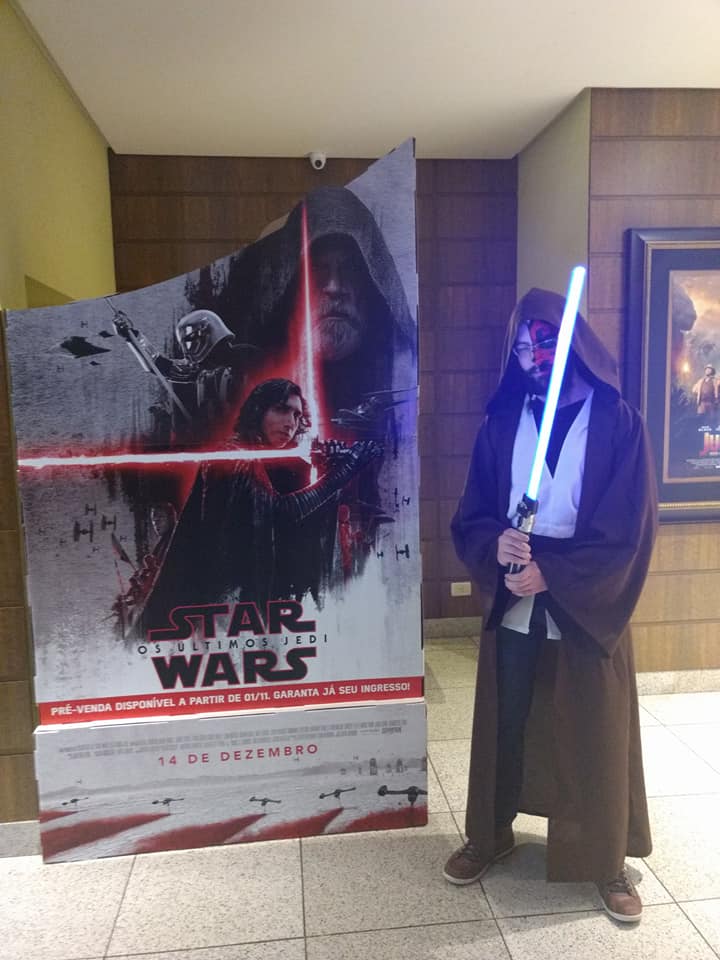 Star Wars: Os Últimos Jedi está em cartaz no Cineplus Emacite. O filme atrai fãs de Riomafra e de toda a região. Alguns deles assistem vestidos a caráter. Jean Knetschik e Jefferson Beuther são exemplos disso. Eles assistiram ao filme com grande estilo em Mafra.