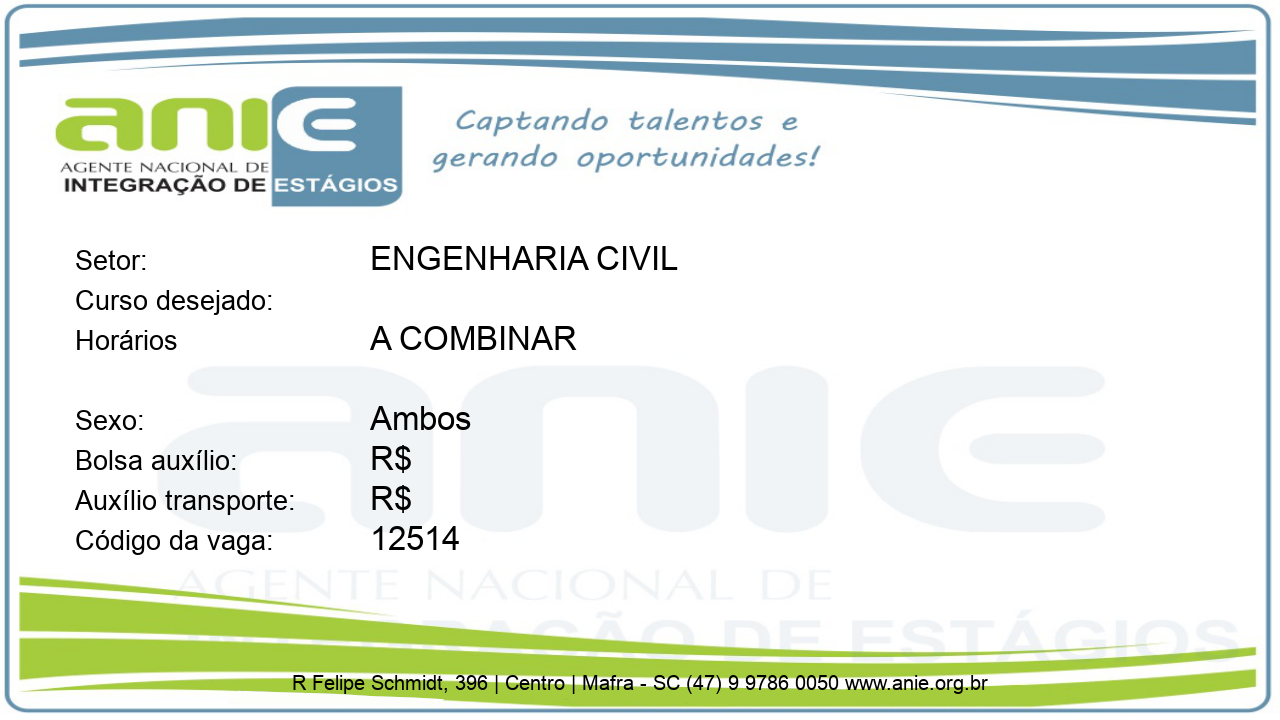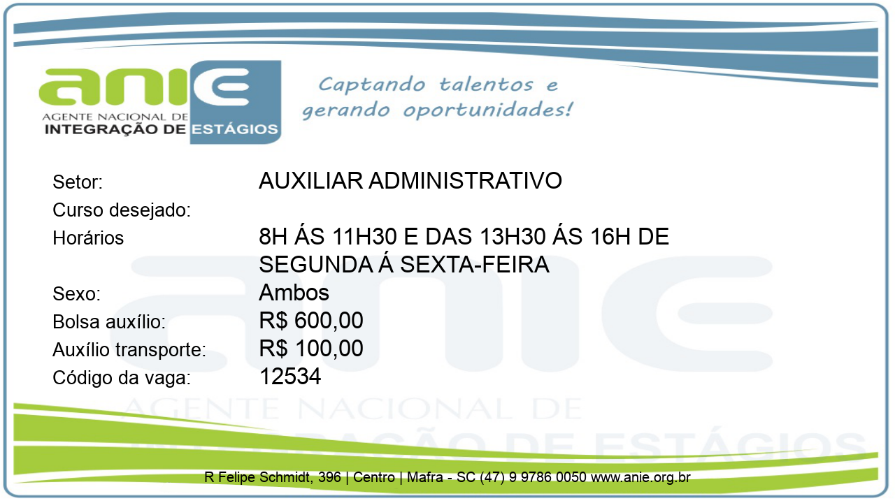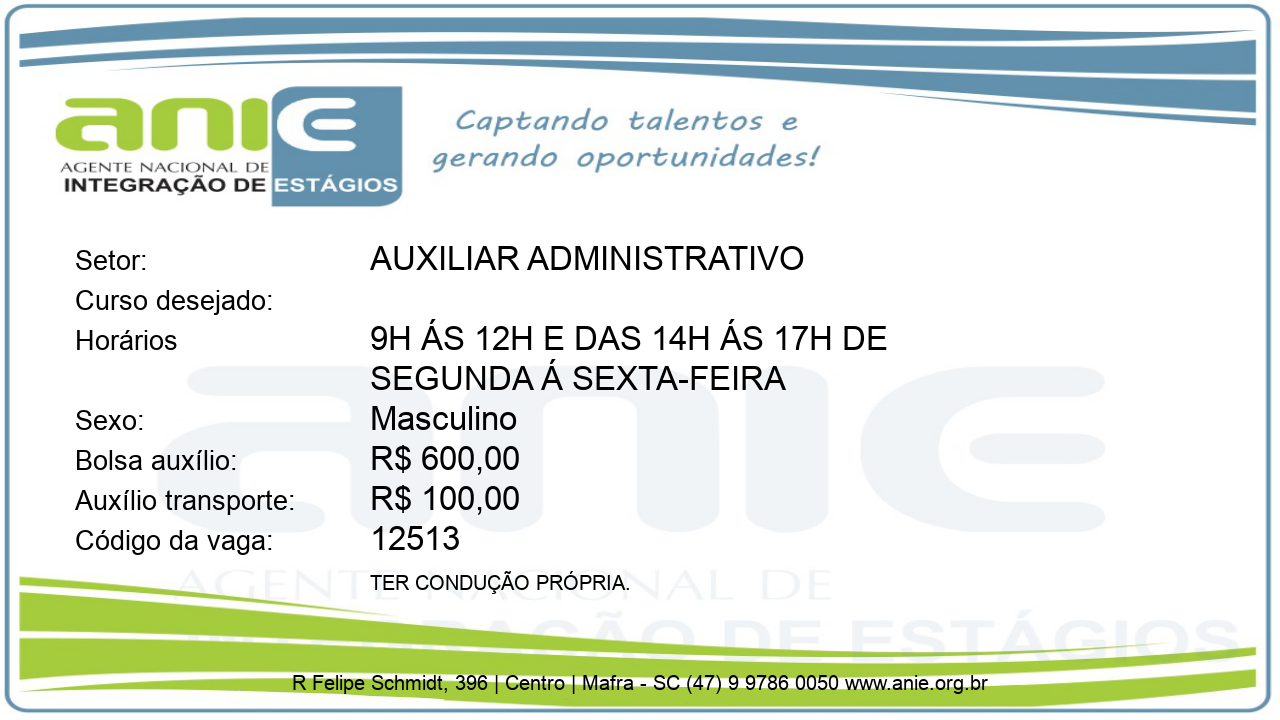 Os interessados devem comparecer na unidade de Mafra da ANIE.