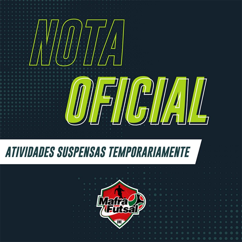 O projeto Mafra Futsal, por meio da sua diretoria, informa aos alunos, pais e a comunidade em geral que as atividades de todas as categorias (sub-07, sub-09, sub-11, sub-13, sub-15 e turmas femininas) estão suspensas a partir desta quarta-feira, dia 18 de março de 2020.