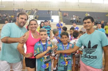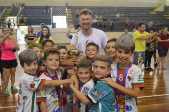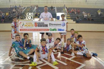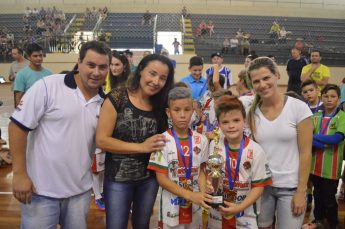 Dupla comemoração da categoria sub-09 na tarde deste sábado (09), no Ginásio de Esportes Wilson Buch. Além de vencer a sexta etapa da III Copa Norte, a garotada da Escolinha Mafra Ferromax/DME também ergueu o troféu de campeão geral da competição, tendo ficado em primeiro na categoria, com 56 pontos computados. A categoria sub-13 mafrense, por sua vez, obteve 48 pontos, ficando em segundo lugar.