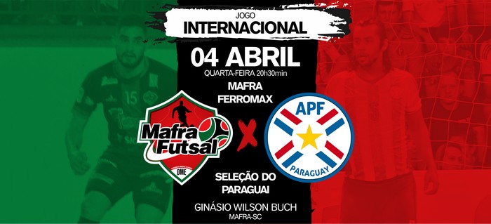 Tendo como palco o Ginásio de Esportes Wilson Buch, em Mafra, a equipe de futsal mafrense recebe a Seleção do Paraguai para um jogo amistoso, a partir das 20h30min. No Brasil, o time do país vizinho está fazendo uma maratona de amistosos, onde se prepara para as Eliminatórias para Copa do Mundo de Futsal.