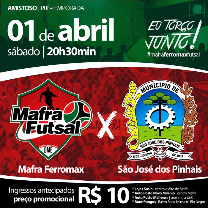 Depois da grande partida da última semana, onde o Mafra Ferromax venceu o Jaraguá Futsal, a equipe mafrense retorna ao Ginásio de Esportes Wilson Buch na noite deste sábado (01), a partir das 20h30min, onde recebe o time São José dos Pinhais.