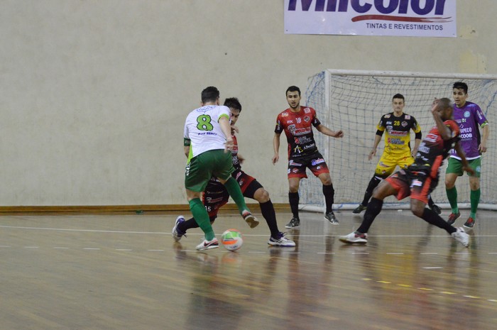Faltando 10seg para o final do primeiro tempo, gaúcho Lucas Peres recebeu a bola na metade da quadra e, de perna esquerda, mandou no canto superior direito, abrindo o marcador para o Mafra Ferromax.