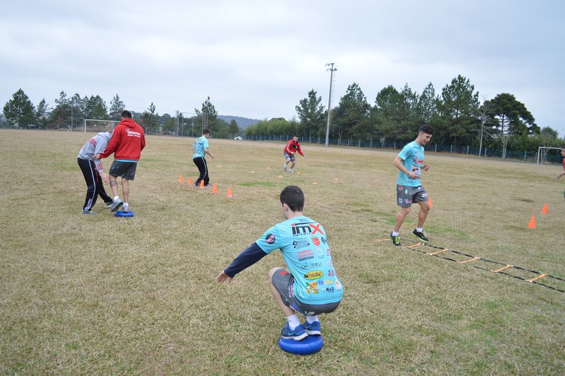 Sob a coordenação do preparador fÃsico Mario César Garcia filho, os trabalhos do perÃodo matutino foram realizados no campo da Universidade do Contestado (UnC). À tarde, as atividades aconteceram na Oxy Academia.