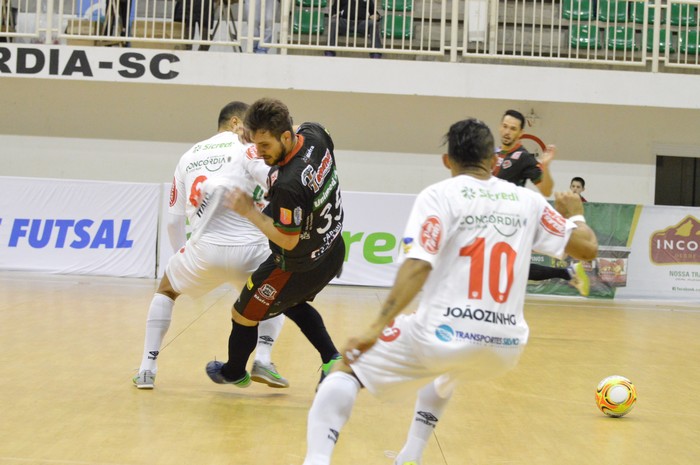 Com a vantagem de ter vencido o jogo de ida, no último dia 07, em casa, o Mafra Ferromax fechou o tempo normal da partida com placar desfavorável de 3 a 1. Quem abriu o placar, aos 09min25seg, com um gol do pivô Antonio. Joãozinho, aos 11min38seg anotou para a equipe da casa, igualando o resultado. A virada veio ainda no primeiro tempo, quando Ítalo, aos 18min15seg colocou a bola no fundo da rede mafrense. O segundo tempo veio com o terceiro gol concordiense, anotado por Douglinhas, aos 16min33seg.
