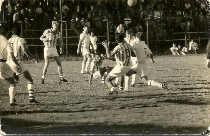 Na foto um jogo na baixada mafrense na década de 60, aos fundos a arquibancada dos torcedores do Operário. Na disputa do lance pelo lado do Operário, Mário Bartnack (in-memorian), e Nereu Tatara. No chão pelo lado do Peri o zagueiro Zeca Preto (in-memorian), sendo observada a jogada, pelos jogadores, Geada pelo Peri e Xepa pelo Operário.