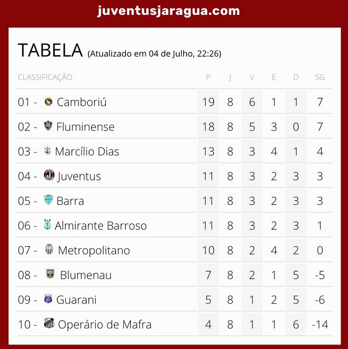 Com o tropeço do Fluminense quem aproveitou a rodada foi à equipe de Camboriú. Jogando diante de sua torcida o Camboriú, numa partida equilibrada, teve dificuldades para vencer o Juventus de Jaraguá do Sul, pelo placar de 03 a 02 de virada.