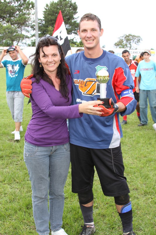 Vice-presidente Kátia Lanski, entregando o troféu de goleiro menos vazado, ao atleta Ivan Pombo do Hilton