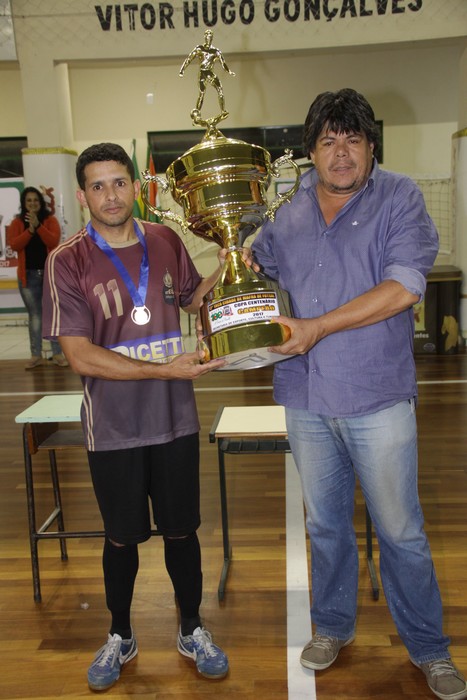 O desportista Bozó (DME), premiando a equipe campeã, sendo representada por Gleison