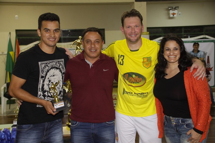 Principais artilheiros com 09 gols os atletas Luizinho (Amigos do XV) e David Willian (JS/J&J Pinturas), juntamente com o vereador Cirineu e Simone Mazzai