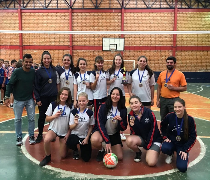 As equipes do Santo Antônio, no feminino, e CEMMA, no masculino são as campeãs de Voleibol na categoria 12 a 14 anos da fase municipal dos Jogos Escolares de Santa Catarina – JESC. Os jogos aconteceram na última semana, no perÃodo de 14 a 16 de maio, no Ginásio de Esportes da escola Mario de Oliveira Goeldner. Elas seguem agora para a fase microrregional em data e locais a serem definidos pela Fesporte.
