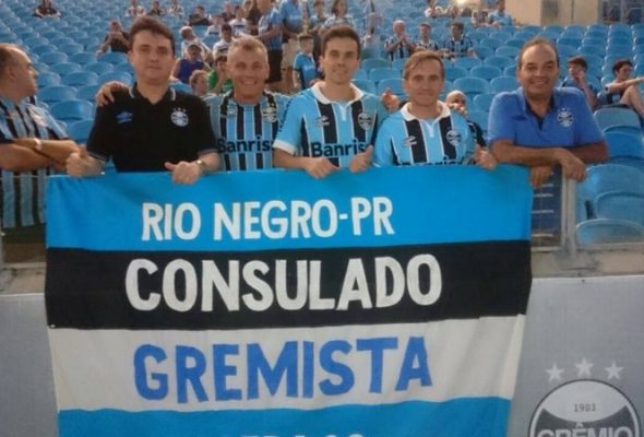 Torcedores do Consulado gremista de riomafra estiveram na Arena do Grêmio