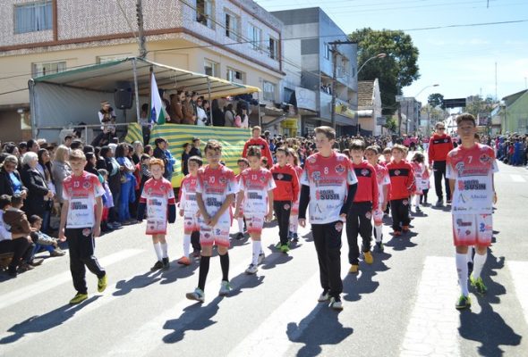 Escolinha Mafra Ferromax/DME leva Tocha Olímpica e mascote ao Desfile da Independência