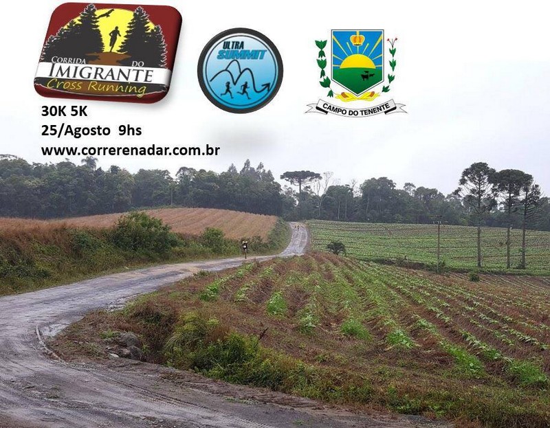 Numa idealização do Departamento Municipal da Cultura, Esporte e Turismo, o municÃpio de Campo do Tenente, estará recebendo neste domingo (25/08), a terceira edição da Corrida do Imigrante, com percursos de 05 km e 30 km (Cross Running), fazendo parte do Circuito Summit 2019.