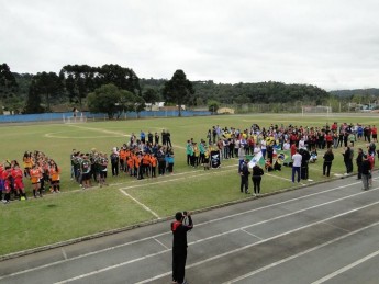 Com 738 atletas inscritos, a regional de Rio Negro realizou nesta sexta-feira (02) a cerimônia oficial de abertura do Bom de Bola 2016. Com a participação de 10 cidades da região, o evento contou com a presença de coordenadores, árbitros, organizadores, além de um desfile dos atletas-estudantes de cada município. Jogadores e jogadoras de Rio Negro, Piên, Campo do Tenente, Contenda, Mandirituba, Balsa Nova, São José dos Pinhais, Campo Largo, Lapa e Araucária participaram da cerimônia. Palavras de incentivo e amor ao esporte, o tradicional juramento dos atletas, hino nacional sendo executado e cantado por todos: tudo isso fez parte do evento realizado no Estádio Municipal Ervino Metzger.