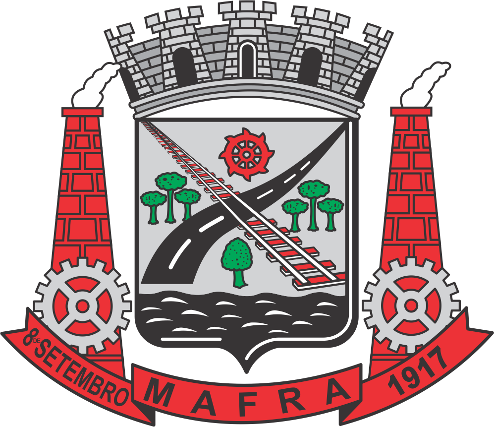 No brasão, acompanha a faixa que traz o nome do município de Mafra e sua data de criação “8 de setembro de 1917″ (ou emancipação política, como descreve a lei nº 773-A de 1972), o tradicional “Castelo Mural”, uma coroa na forma de torres de castelo, que simboliza a riqueza de uma cidade e também a sua autonomia em relação às demais, o que pode muito bem ser compreendido como símbolo da criação do município em 1917 (desmembrado de Rio Negro) e, que de certa forma, liga-se ao desenho da “roda navalhada”, instrumento utilizado na execução de Santa Catarina de Alexandria (mártir do catolicismo em seus primeiros séculos), alusivo portanto à padroeira que dá nome ao nosso estado de Santa Catarina.