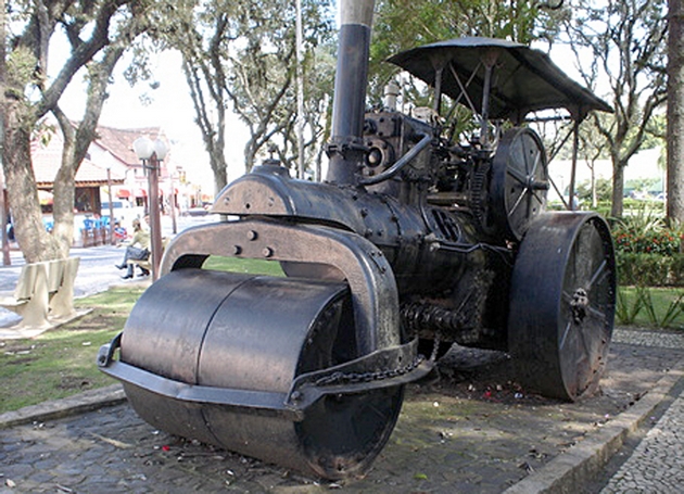 Hoje, lembrando da imaginação dos tempos de criança sobre o tal “trenzinho”, sei que aquela ideia infantil não estava de todo errada. É claro que aquilo não era um trem, mas de certa forma, por sua sua origem, seu funcionamento e consequente aparência, aquele rolo compressor pode até ser considerado um primo não muito distante das nossas primeiras locomotivas.