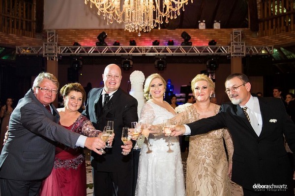 A noiva é filha do casal Fátima e Roberto Kalinowski e o noivo de Odete Schafachek e Evaldo Liebel.