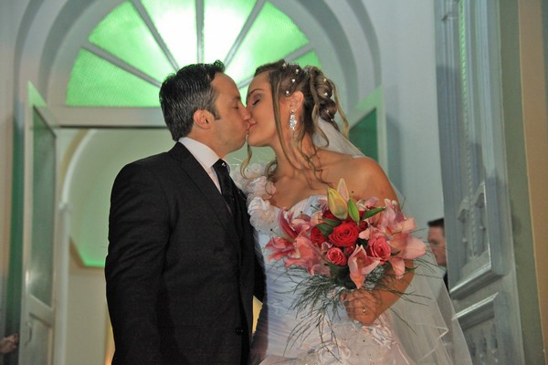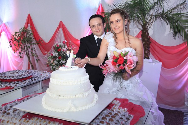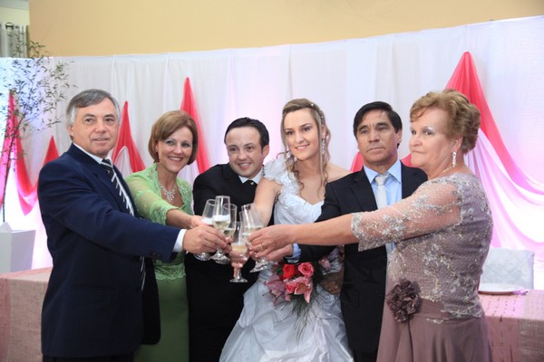 Após a emocionante cerimônia religiosa, os noivos receberam familiares e amigos em uma animada recepção nas dependências da Sociedade União Fuchs.