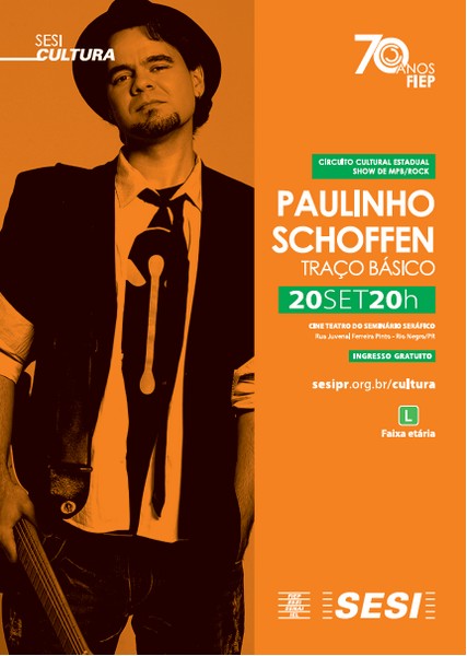 Pelo Circuito Cultural do SESI/RN em parceria com a Prefeitura de Rio Negro, através da Secretaria de Cultura e Turismo, acontece hoje (20.09.2014), concorrido show de MPB e Rock , com Paulinho Schoffen.