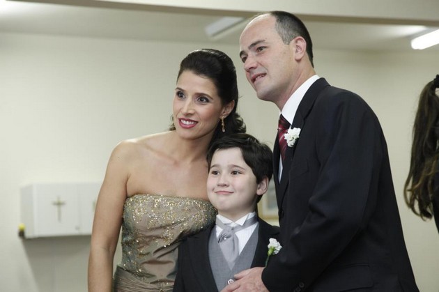 Na foto com seu esposo Luiz Fernando e o filho João.