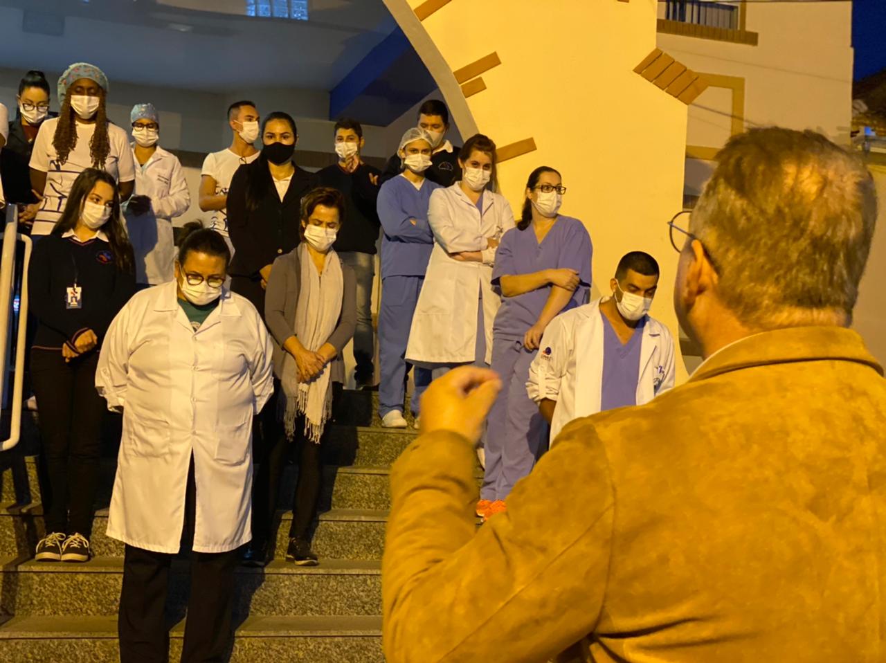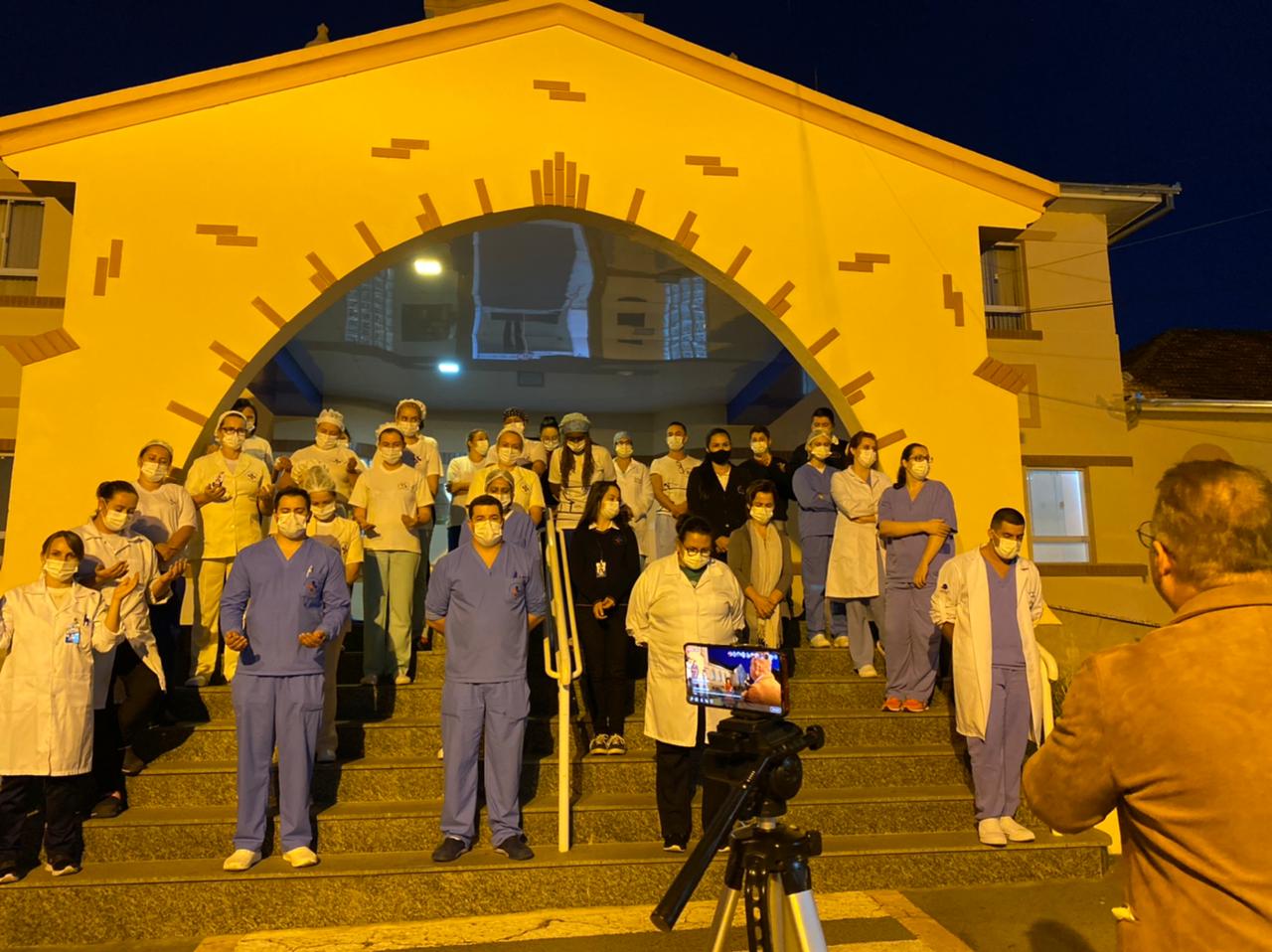 Na noite desta quarta-feira (14), foi realizado no Hospital São Vicente de Paulo pela Assembleia de Deus de Mafra, um momento de intercessão e comunhão em homenagem aos profissionais de saúde, com belas palavras, canções e orações.
