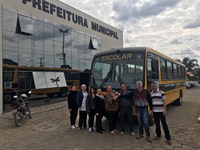 O prefeito sente-se satisfeito pela aquisição, pois se preocupa com a ampliação e melhoria da frota escolar.