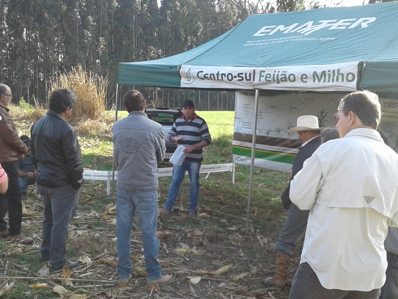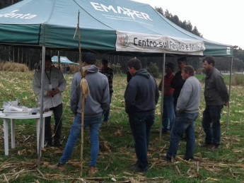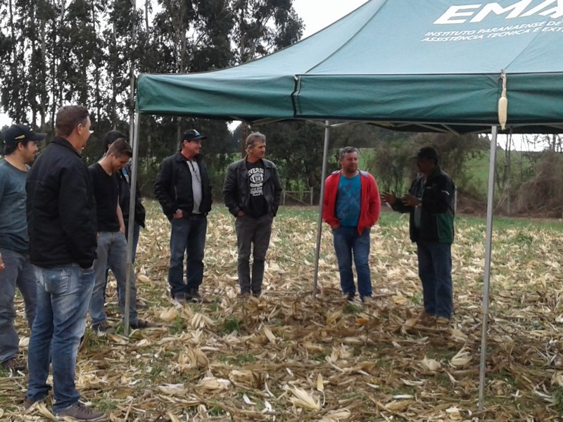 Com o objetivo de buscar aumento da produção e diminuir custos, o EMATER de Campo do Tenente, com apoio do Projeto Centro Sul Feijão e Milho, MDA (chamada pública) e a Prefeitura Municipal de Campo do Tenente (através da Secretária de Agricultura), realizou no último dia 15 de julho, mais um: “Dia de Campo” para atualizar as tecnologias, normativas e crédito para a produção de milho safra 2016/2017. Na ocasião, os agricultores receberam orientações, sobre: cultivares de milho, controle de pragas e doenças, gestão das águas, área de refúgio para cultivares de milhos transgênicos, receituário agronômico e Plano Safra Agricultura Familiar – 2016/2017. Na ocasião, também foram informados dos resultados obtidos nas unidades de milho implantadas na safra 2015/2016, que ficaram na média de 150 Sacas/ha, a um custo de 2.865,67/ha.