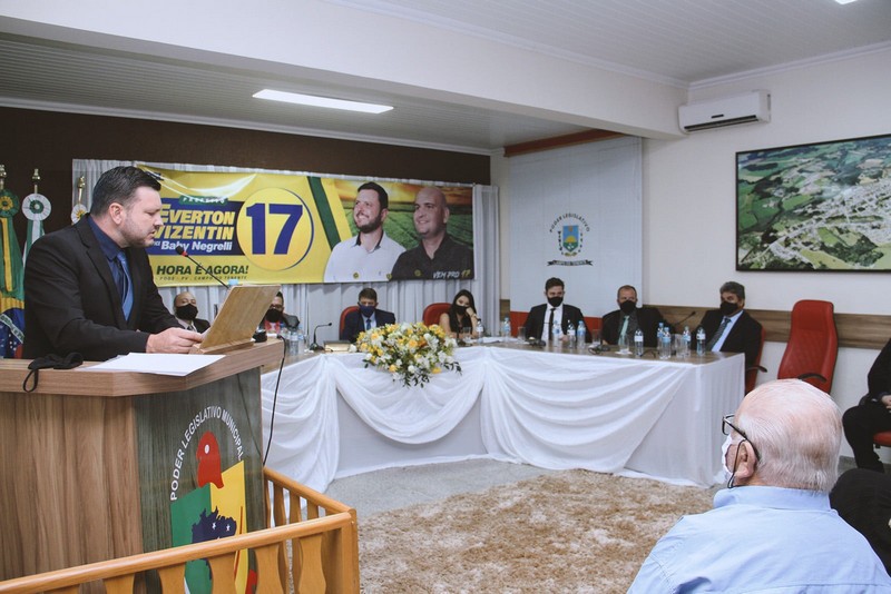 Durante sua posse no último dia 1º em seu primeiro discurso emocionado o prefeito Weverton Vizentin agradeceu em primeiro lugar a sua família, seus pais, sua esposa e filhos pelo total apoio recebido. Em especial ao seu pai, Olympio Vizentin, que completou 100 anos de vida no último dia 12, pela educação, ensinamentos e princípios dados. Agradeceu também ao vice prefeito João Paulo Negrelli e sua família pela amizade e parceria de muitos anos. Agradeceu ao seus 39 candidatos a vereador, aos líderes de partidos e todos que contribuíram diretamente ou indiretamente na campanha. Agradeceu de coração os amigos e a todos que confiaram o seu voto, e se comprometeu a honrar cada voto com muito trabalho, dedicação, comprometimento, transparência e honestidade.
