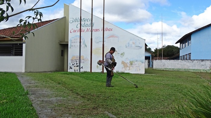 A frente de limpeza realizou nesta terça-feira a limpeza dos canteiros incluindo capina, roçagem e recolhimento de entulhos nas vias hoje foram atendias a Biblioteca Municipal e Unidade Básica de Saúde, e nas ruas Maria Clara Brandão Tesseroli e na rua Jorge Alves de Barros.