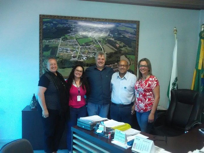 O prefeito Jorge Quege e a secretaria municipal de Educação Marilene Aparecida Hornick receberam no dia 26 a visita do Senhor Mauricio Ferras da Costa chefe do Nucleo Regional da Área Metropolitana Sul e sua equipe para uma visita técnica para conhecimento da estrutura e organização de ensino.