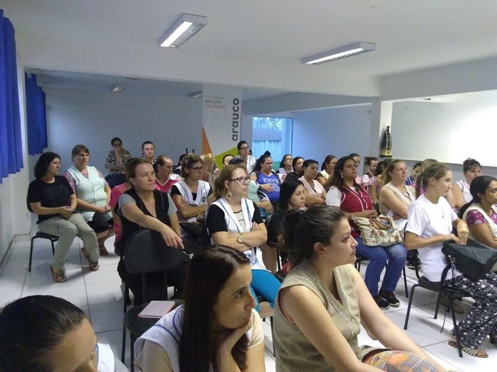 A secretária de Educação Marilene Aparecida Hornick comenta sobre a importância de estar incentivando os professores e educadores com novas ideias e a buscar metodologias mais diversificadas tornando o ensino aprendizagem mais prazeroso. Agradece a parceria com empresa Arauco que sempre vem nos proporcionando palestrantes renomados assim melhorando nosso Ãndice educacional.
