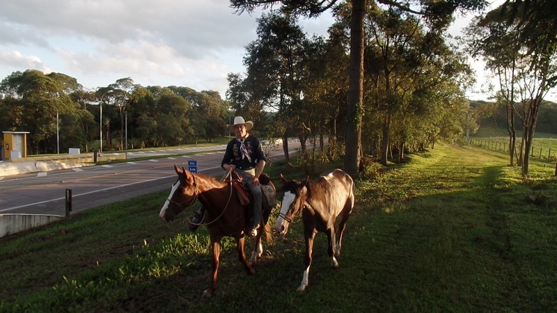 Kleber Ferreira, (empresário da área de entretenimentos), que está à frente do empreendimento Cowboys do Asfalto e ex – dublê do Beto Carrero Word, está realizando a “Cavalgada da Esperança”, percorrendo o antigo caminho dos tropeiros: de Viamão (RS), a Sorocaba (SP), totalizando mais de 1500 km. Kleber chegou ao município de Campo do Tenente – PR, na terça-feira (08/12) e foi recepcionado na fazenda do Sr. Clemente no Lageado. Os cavaleiros tenenteanos : Oziel Fabrasil, Rafel Farias e Arnaldo José Cole (Gaúcho), foram ao encontro de Kleber, quando de sua chegada ao município (BR 116). Já na despedida rumo á Lapa, Kleber foi acompanhado por cavaleiros da família Arruda, após almoço no Posto Hubner.