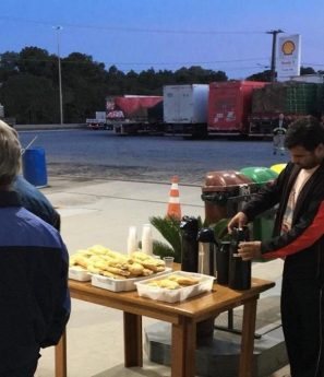 ” Na cidade onde temos nossa loja, está cheio de caminhões. Fizemos comida e cedemos banheiro para eles”.