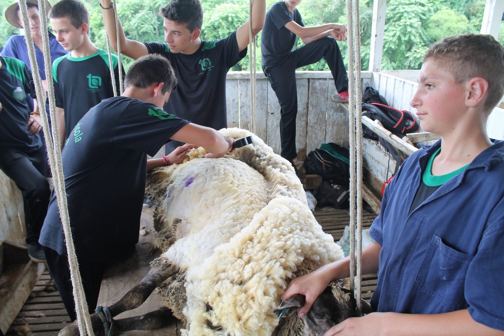 Num dia perfeito após tanto tempo chuvoso, a Escola Agrícola Municipal “Prefeito José Schultz Filho” abriu na última terça-feira, 10, as suas portas para a comunidade, recebendo centenas de pessoas entre pais, alunos, amigos e interessados em conhecer a unidade para matricular seus filhos. Durante o III Dia de Campo, os cerca de 280 alunos apresentaram aos visitantes os projetos desenvolvidos pelos alunos e professores durante o ano, que curiosos, questionavam sobre os diversos procedimentos nas atividades abordadas. Um exemplo foi a tosquia em ovelha, feita por alunos do 8º e 9º anos da escola, observada atentamente por alunos da EMEB Evaldo Steidel, da localidade do Saltinho do Canivete. Os visitantes aprenderam que é necessário fazer a tosquia uma vez ao ano, no início do verão, para evitar que as ovelhas sofram no calor.